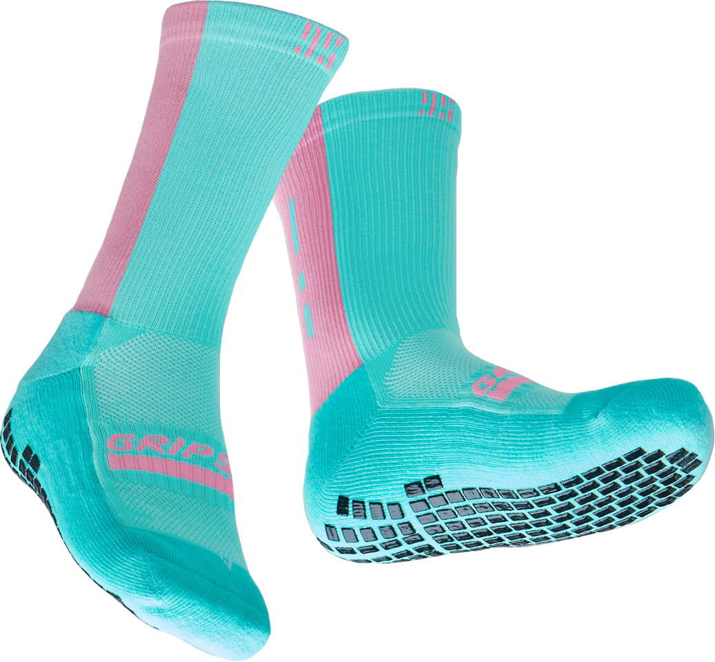 GRIP STAR 50/50 TEAL / PINK CREW SOCKS